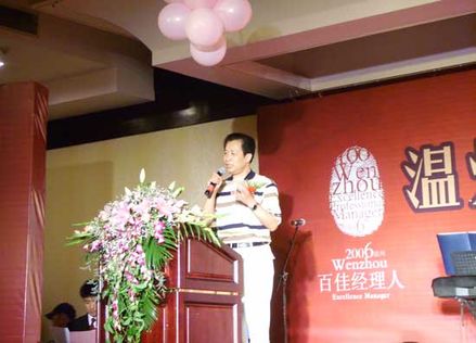虞培清总经理作为“温州市十大功勋职业经理人”代表上台演讲